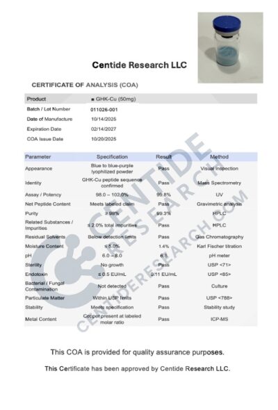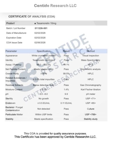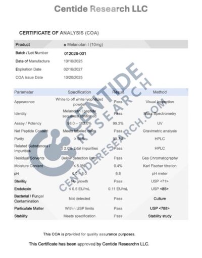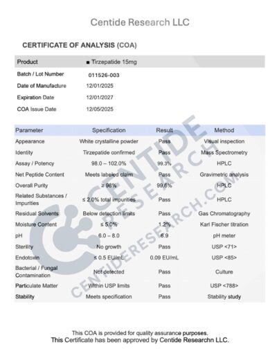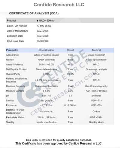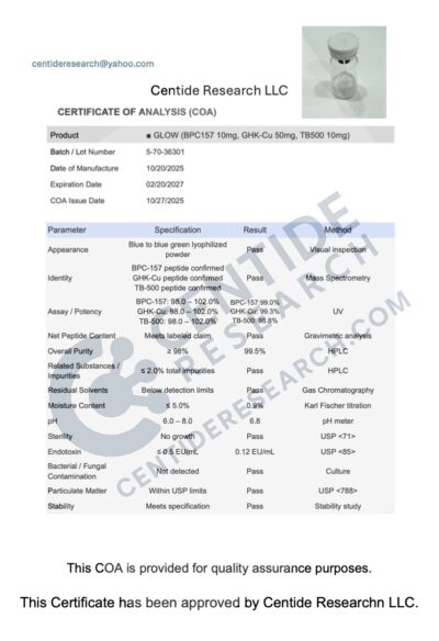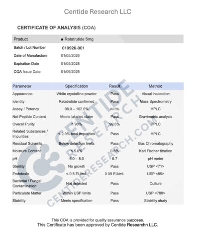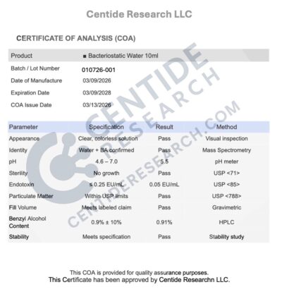 Every vial we sell comes from a lab that follows current Good Manufacturing Practices (cGMP). That means each step of production is documented and controlled. Before a batch is released, it’s tested by independent third-party labs for purity, identity, and sterility. Certificates of analysis are available so you can see the exact test results.